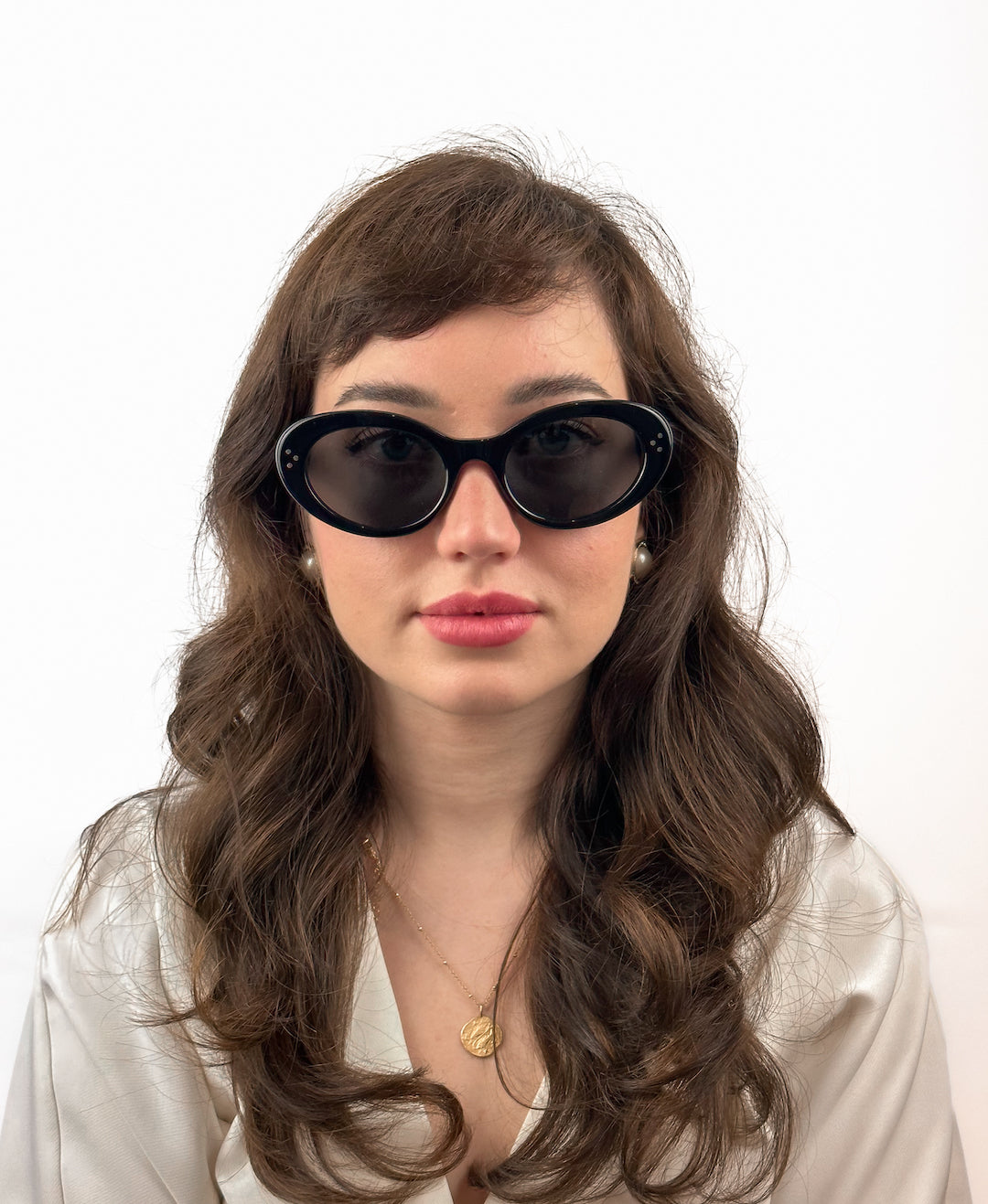 Diese Acetat-Sonnenbrille versprüht den unbeschwerten 60er-Jahre-Charme. Sie wurde in Italien gefertigt und verfügt über einen ovalen Cat-Eye-Rahmen, goldfarbene Metall-Logo-Bügel und schwarz getönte Gläser für optimalen UV-Schutz.